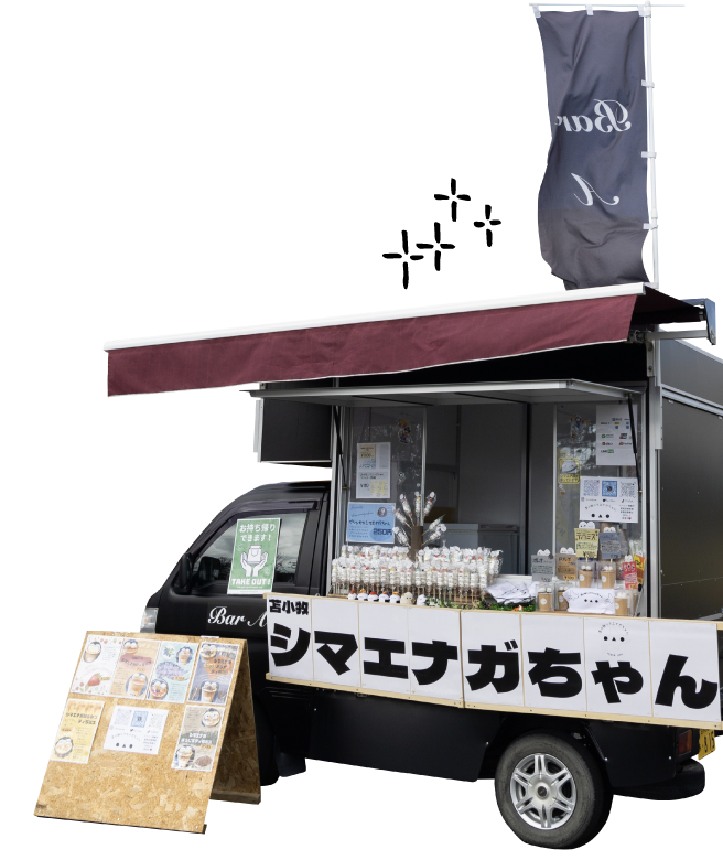 野鳥シマエナガをモチーフにしたスイーツを作っているキッチンカーです。